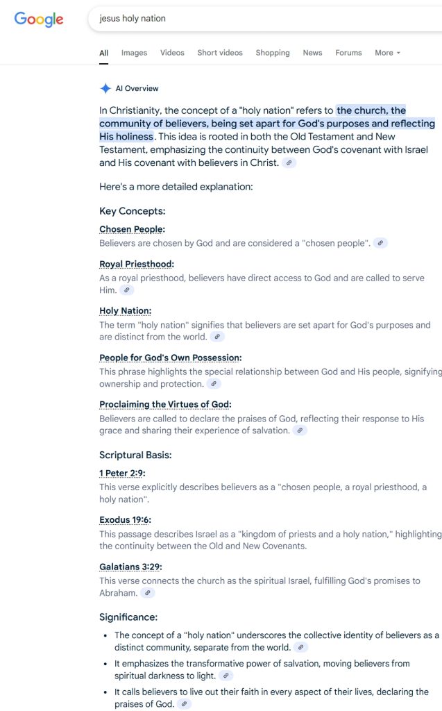 Holy Nation is a Biblical Metanarrative– an overarching account or interpretation of events and circumstances that provides a pattern or structure for people’s beliefs and gives meaning to their experiences: “traditional religions provide stories that deliver a metanarrative about how we should live our lives.”