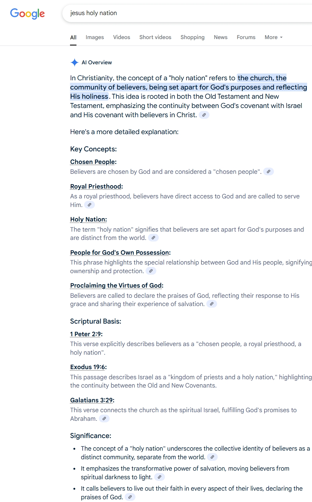 New Testament: “But you are a chosen generation, a royal priesthood, a holy nation, His own special people, that you may proclaim the praises of Him who called you out of darkness into His marvelous light;” -1 Peter 2:9