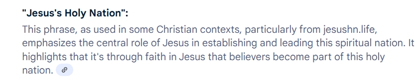 Life is sacred! Jesus’ Holy Nation has but one head and that is Christ. The spirit that guides this People is divine. Jesus’ Holy Nation is comprised of born again/anew persons as written in Holy Scripture. As God is Love, and Jesus walked on earth in love, so do the People of God live by love. Jesus’ Holy Nation’s practice is love. Jesus’ Holy Nation is NOT a political nation- it functions exclusively in the eternal Word of God. Jesus’s Holy Nation is NOT unequally yoked with unbelievers; secular people have a different agenda in life. Jesus’ Holy Nation People are exclusively Peacemakers, and, therefore, do not train for physical war. Following suit are some Palestinians. Jesus’ Holy Nation is in unity. As to His organization and church, man has had nothing whatever to do in shaping it in any way . . . All man has ever had to do with it was to accept it as it was made by the Lord himself. This church is perfectly organized even to detail governing the actions of all its faithful believers. Its appointed seasons of worship are all appointed. The ministry with all other gifts needed in its government and service is all provided for. It needs no manmade constitution, or by-laws, that are not given in the Bible.